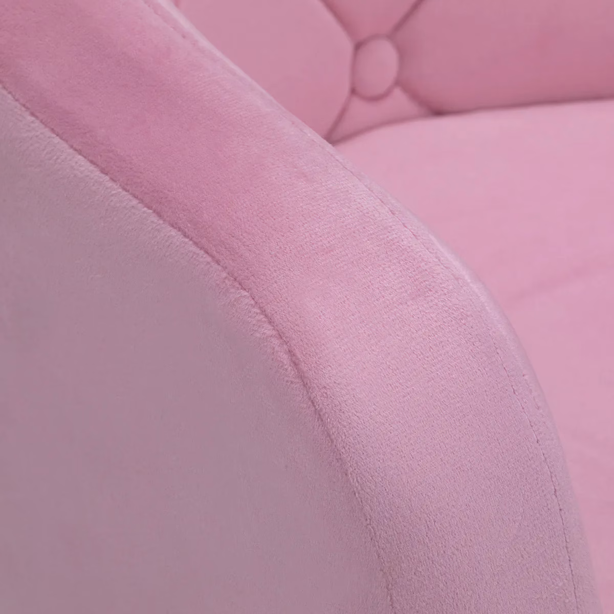 Stol je oblazinjen s prijetnim žametnim materialom v odtenkih rožnate barve, ki v kombinaciji z dekorativnim prešitjem ustvarja izjemno eleganten videz. Stabilno okroglo podnožje v zlatih odtenkih se popolno ujema z žametno površino in poudarja sofisticiran značaj pohištva. 🛡️